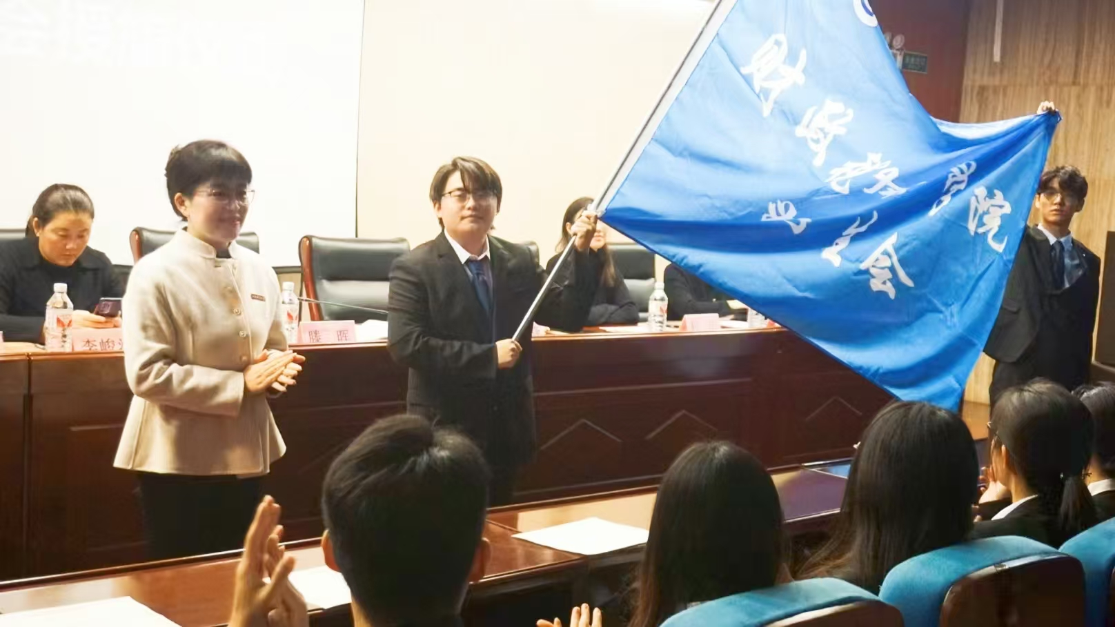 学生会授旗并对新加入学生会的同学表示热烈祝贺。同时她对全体学生干部提出几点要求:一要提高政治站位,增强自身素质;二要明确职责,强化服务意识;三要开拓创新,提高工作水平;四要团结协作,形成工作合力。希望大家珍惜学生干部岗位这个特别的课堂,锻炼自己、积累经验,以“全心全意为广大同学服务”为宗旨,以团结、实干的工作作风,以丰富多彩的文化活动为载体,全面打造学生干部形象,更好地服务同学、推动中文博彩网站