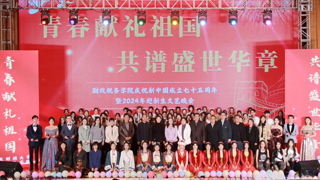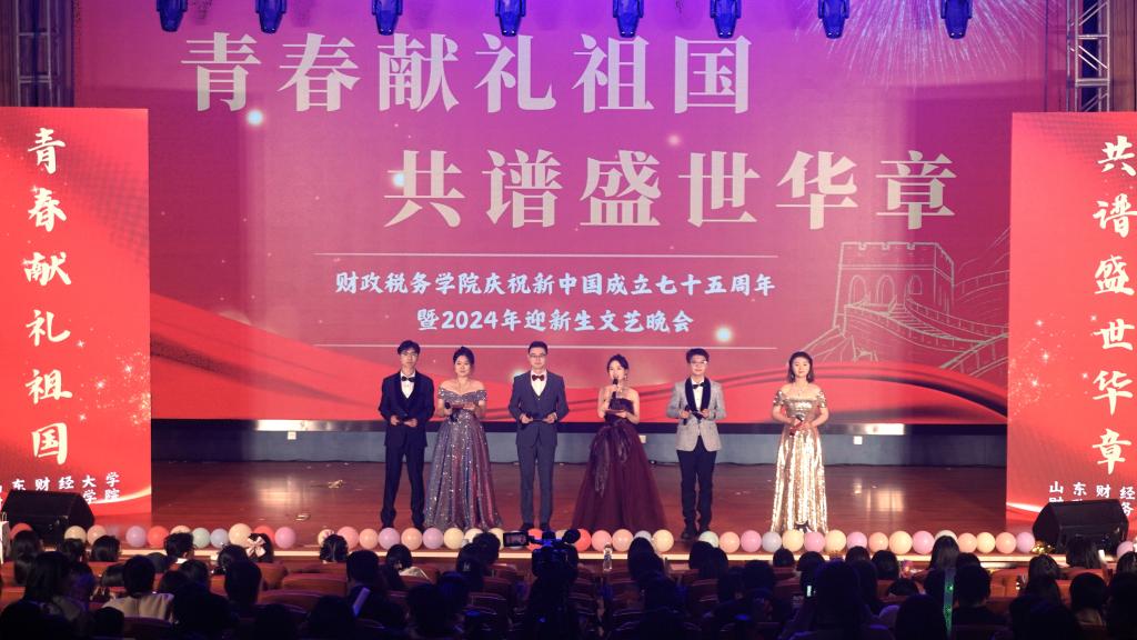 “青春献礼祖国,共谱盛世华章”庆祝新中国成立七十五周年暨2024年迎新生文艺晚会在圣井校区图书馆报告厅隆重举行。山东财经大学党委宣传部副部长张艳霞、党委学生工作部副部长孙丽华、圣井校区管理办公室副主任李永健、团委副书记邢夏子受邀参加本场晚会;中文博彩网站