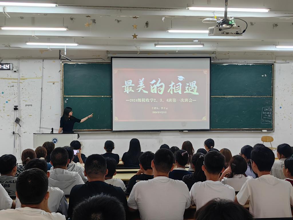 分别组织2024级财政学、税收学新生召开第一次班会和系列教育活动,新生辅导员李子云、李昕鑫和2024级全体新生参会。