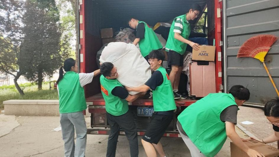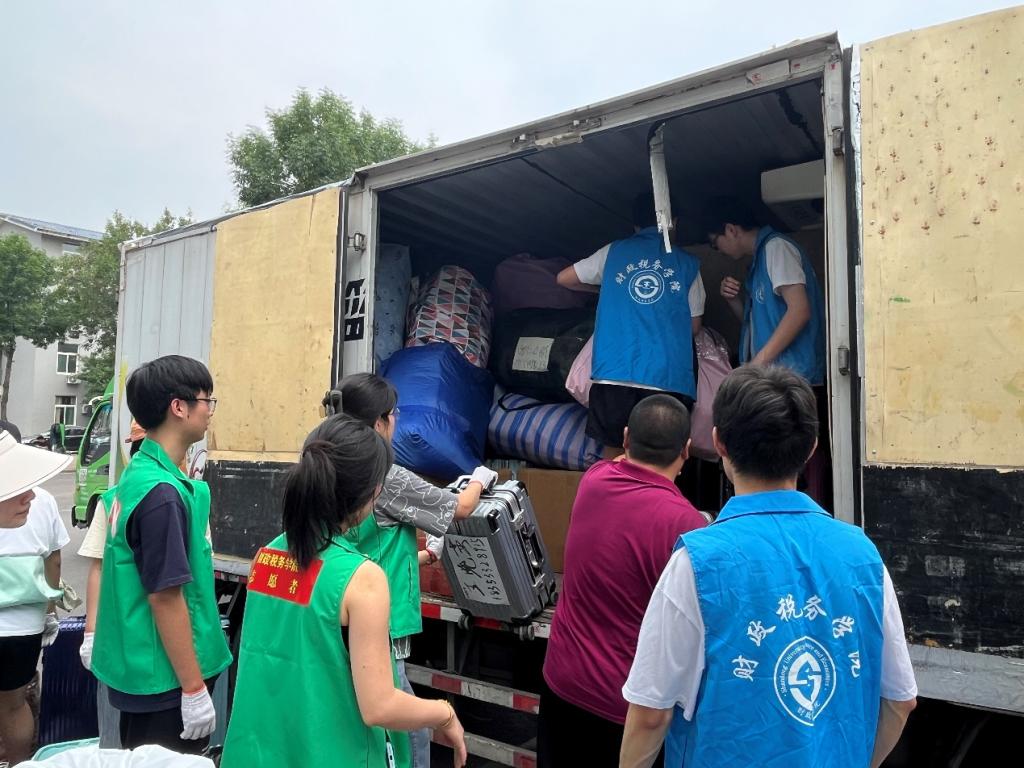 党委副书记滕晖,辅导员郭滨滨、李建永在圣井校区深入宿舍协助同学们装卸行李、清点物资,辅导员程佳在舜耕校区与同学们“并肩作战”。他们用实际行动诠释着师爱的力量,用无微不至为同学们保驾护航。同学们积极发扬团结互助的精神,齐心协力,有序地将同学的行李、物品等搬上运输车辆。他们挥汗如雨,却没有丝毫放松懈怠,积极配合。