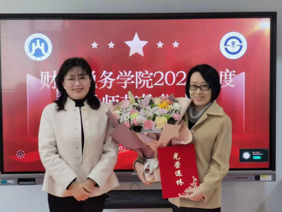 2023年退休教师荣休仪式在办公楼816会议室举行。退休教师梅丽萍、张琳、董建英、邱伟春受邀参加仪式。财税中文博彩网站