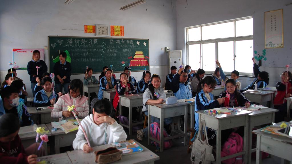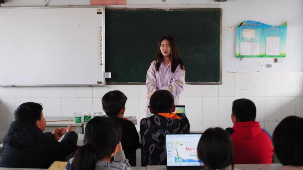 出发伊始,支教队伍高举旗帜,带着洋溢的热情与坚定的责任感,在和煦的春风中奔赴李福小学。在与学生们熟络后,志愿者们展开教学。