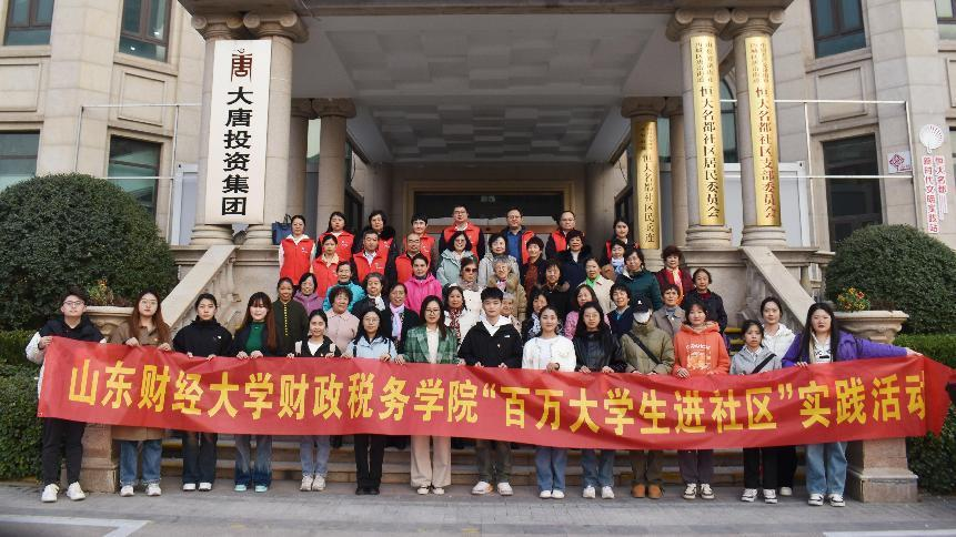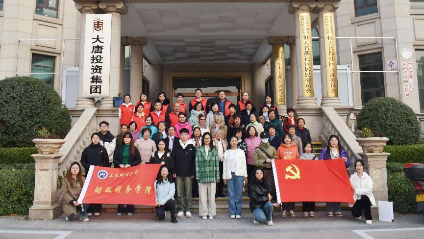 党委组织员、辅导员李子云带领二十余名党员及团员前往济南历城区唐冶街道恒大名都社区开展“百万大学生进社区”活动。本次实践活动主要以“财经知识进万家,幸福生活伴我行”为主题,联合水发集团山东调水公司向社区老年群体科普财经知识,用行动送去温暖。