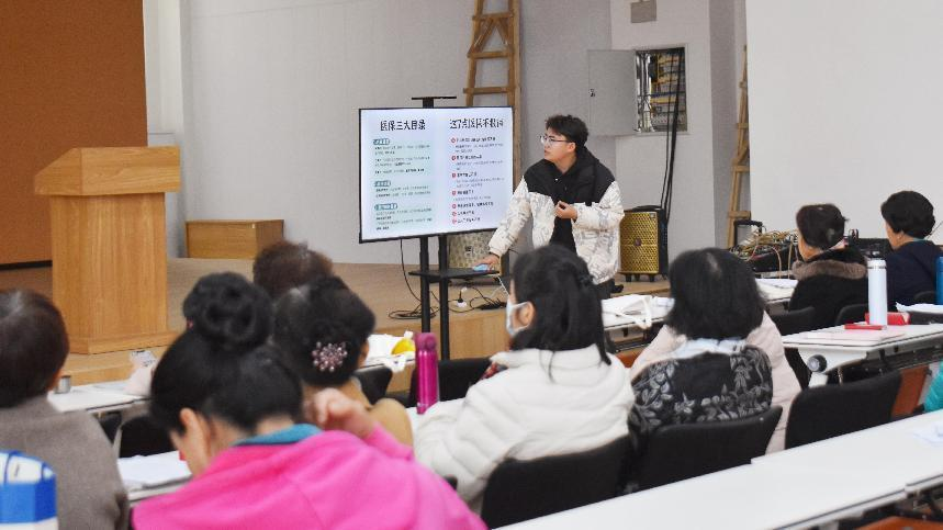 活动之初,同学们来到唐冶街道恒大名都社区党群服务中心为社区居民进行科普。2022级税收学(税务师方向)一班徐泽军就通货膨胀、老年理财、医疗保险三个方面向社区居民展开深入浅出的讲解。他为大家分析了生活中常见的通货膨胀案例,同时从保险投资、储蓄存款、风险投资分门别类提醒理财时要严防诈骗。最后,他还向居民们科普常见骗局以及相应预防指南。财经知识分享结束后,同学们为社区居民送上礼物,表达真挚祝福。