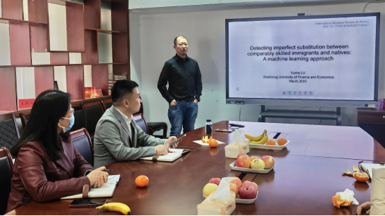 2023年第1期闻道学术论坛在舜耕校区办公楼816举行。本期论坛由青年博士卢云鹤做了题为《Detecting Imperfect Substitution between Comparably Skilled Immigrants and Natives: A Machine Learning Approach》的学术报告,研讨会由青年博士胡春龙主持,中文博彩网站