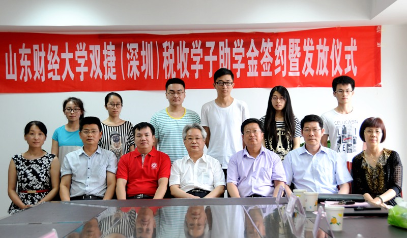 “山东财经大学双捷(深圳)税收学子助学”金是由深圳市双捷税务师事务所有限公司向学校捐赠20万元设立的助学金,项目实施10年,每年资助品学兼优的学生10名,每人2000元。受助学生还将获得社会实践、实习、推荐就业等帮助。