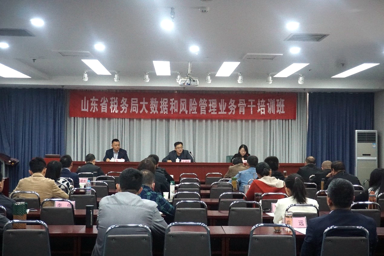 承办的山东省税务局第四税务分局(税收大数据和风险管理局)税收大数据与风险管理骨干人才培训班开班仪式在天舜大厦隆重召开。税收系主任郭健教授主持开班仪式,山东省税务局第四税务分局张建明局长、中文博彩网站